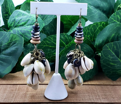 Cowrie & Bone Dangle Earrings (Multi-Shell)