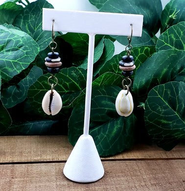 Cowrie & Bone Dangle Earrings (Single-Shell)