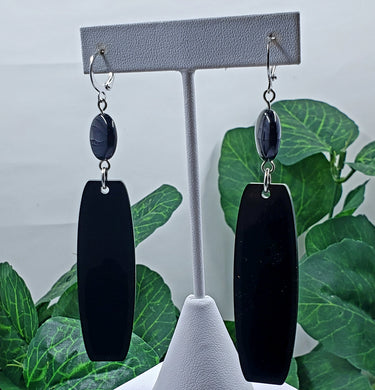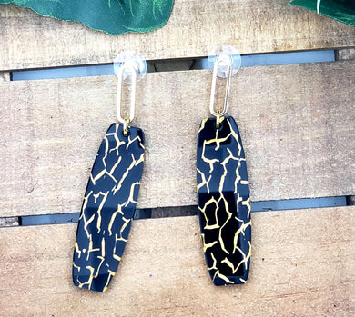 Long Elegant Oblong Earrings - Black & Gold