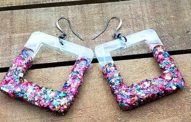 Rounded Square Hoop Earrings with CHUNKY GLITTER