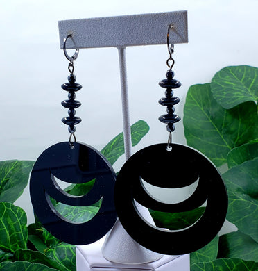 She is Still Smiling Hoops Earrings Black w/Coconut & Bone Beads