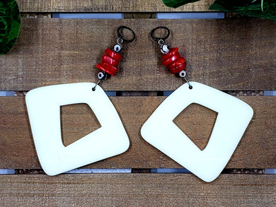 Triangled Right Hoop Earrings - Red (Tribal Collection)